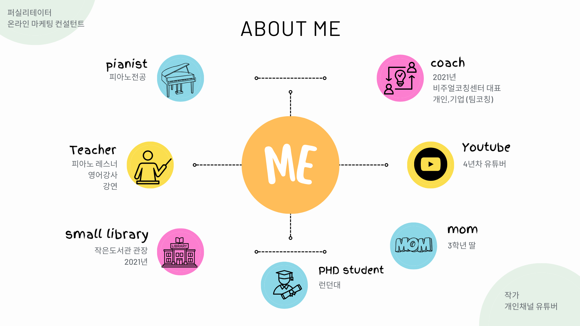 하지만 이런 다양한 활동들이 갑자기 생겨난 것은 아니다. 원래 나는 피아니스트를 꿈꾸는 음대생이었다. 피아노 전공으로 미국에서 석사까지 마친 후, 예전부터 관심 있었던 경영학과에 입학했다. 누군가에게는 음악에서 경영으로, 그리고 지금의 코칭까지 이어지는 여정이 전혀 매칭되지 않아 보일 수 있다. 하지만 나는 예술, 경영, 코칭을 현재 잘 연결해서 나만의 특색 있는 비즈니스로 키워가고 있는 중이다.