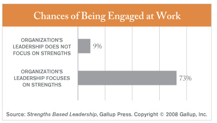 또한 강점을 매일 활용하는 직원들은 그렇지 않은 직원들보다 15% 더 낮은 이직률을 보였으며, 업무에 몰입할 확률이 6배 높았습니다.