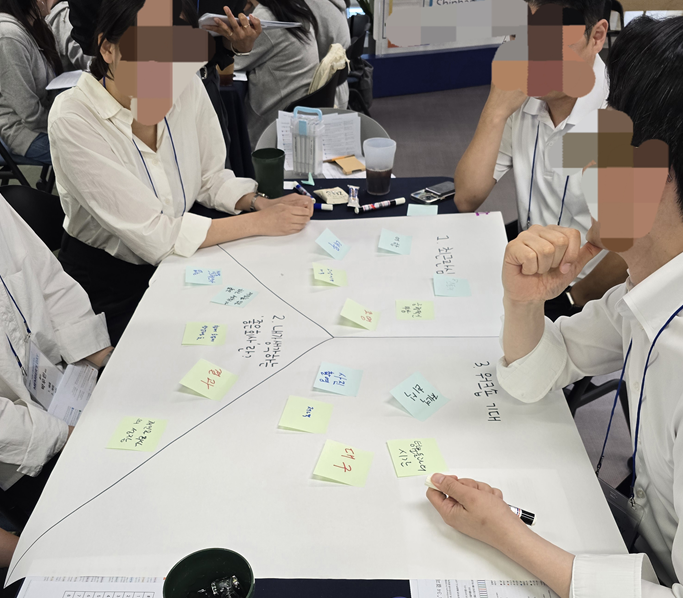 이어서 Y차트 활동을 진행했어요. 조별로 모여서 "좋은 회사란 무엇일까?"에 대해 의견을 나누고, 키워드를 모아 한 문장으로 정의하는 시간이었습니다.