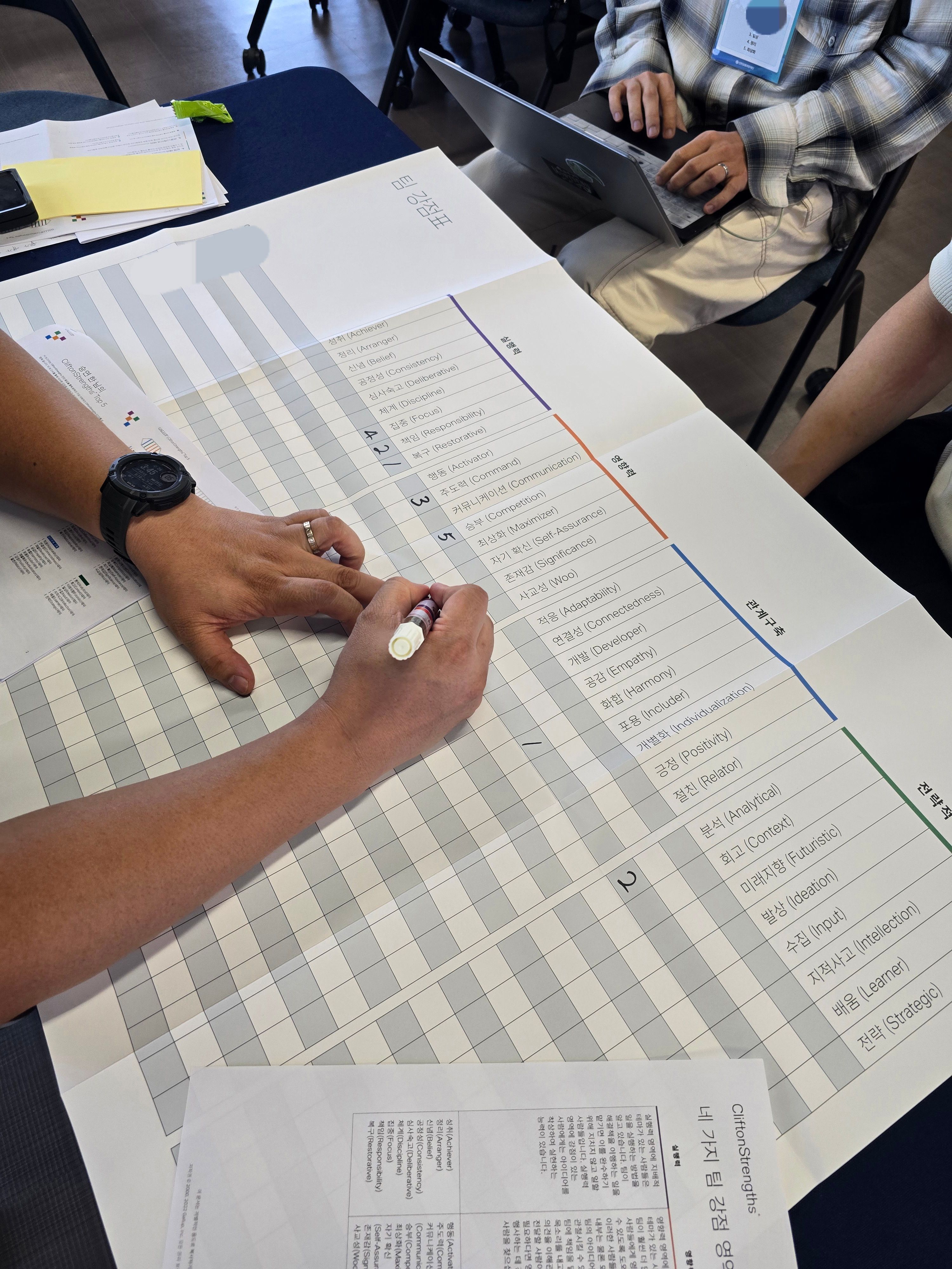 이 시간을 통해 참가자들은 자신이 가진 강점과 재능에 대해 성찰하며, 직무 수행에 있어 무엇에 집중해야 할지 정리하게 됩니다.